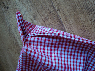 Cut your fabric a little more that twice the size you want your finished bag to be. I didn't do any measuring - just made a selection of sizes. If you use a fabric such as gingham, you can just cut along the lines - super speedy!
